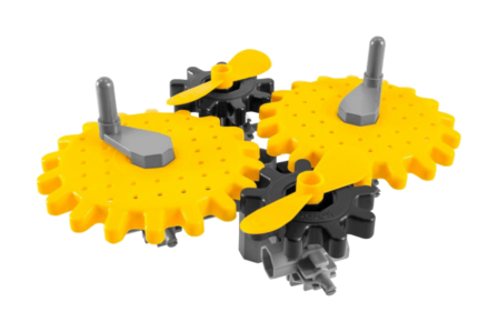 In deze doos vind je, naast de basiselementen van KORBO (tandwielen, rollen en verbindingsstukken), grote tandwielen, propellers, kleine en grote tandwielen en verbindingen. Leuk om je eigen constructie te bouwen en veel interessante observaties. Welk tandwiel laat de constructie sneller draaien, welke kant draaien twee tandwielen op? Welk wiel laat de machine sneller draaien, het grote wiel dat langzamer draait of het kleine wiel dat sneller draait? Hoe leg je op een heel eenvoudige manier aan een nieuwsgierig kind van bijvoorbeeld vijf jaar uit hoe het werkt?
