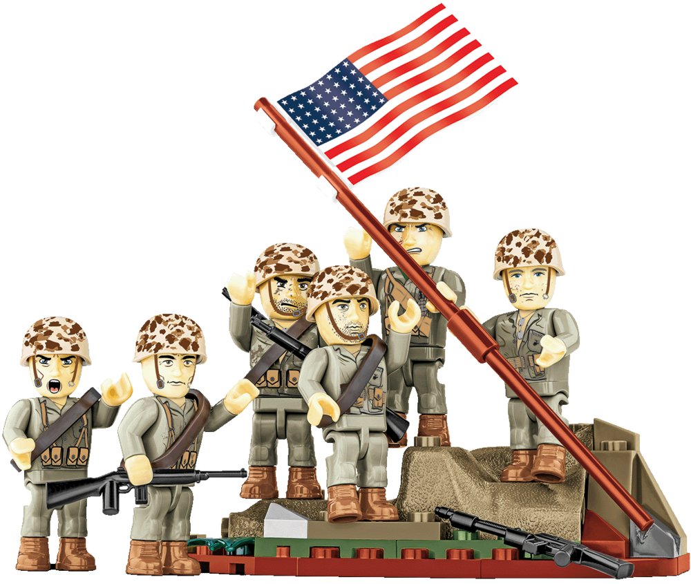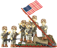 Setje van Amerikaanse soldaten die de vlag hesen op het eiland IWO JIMA in WW2.